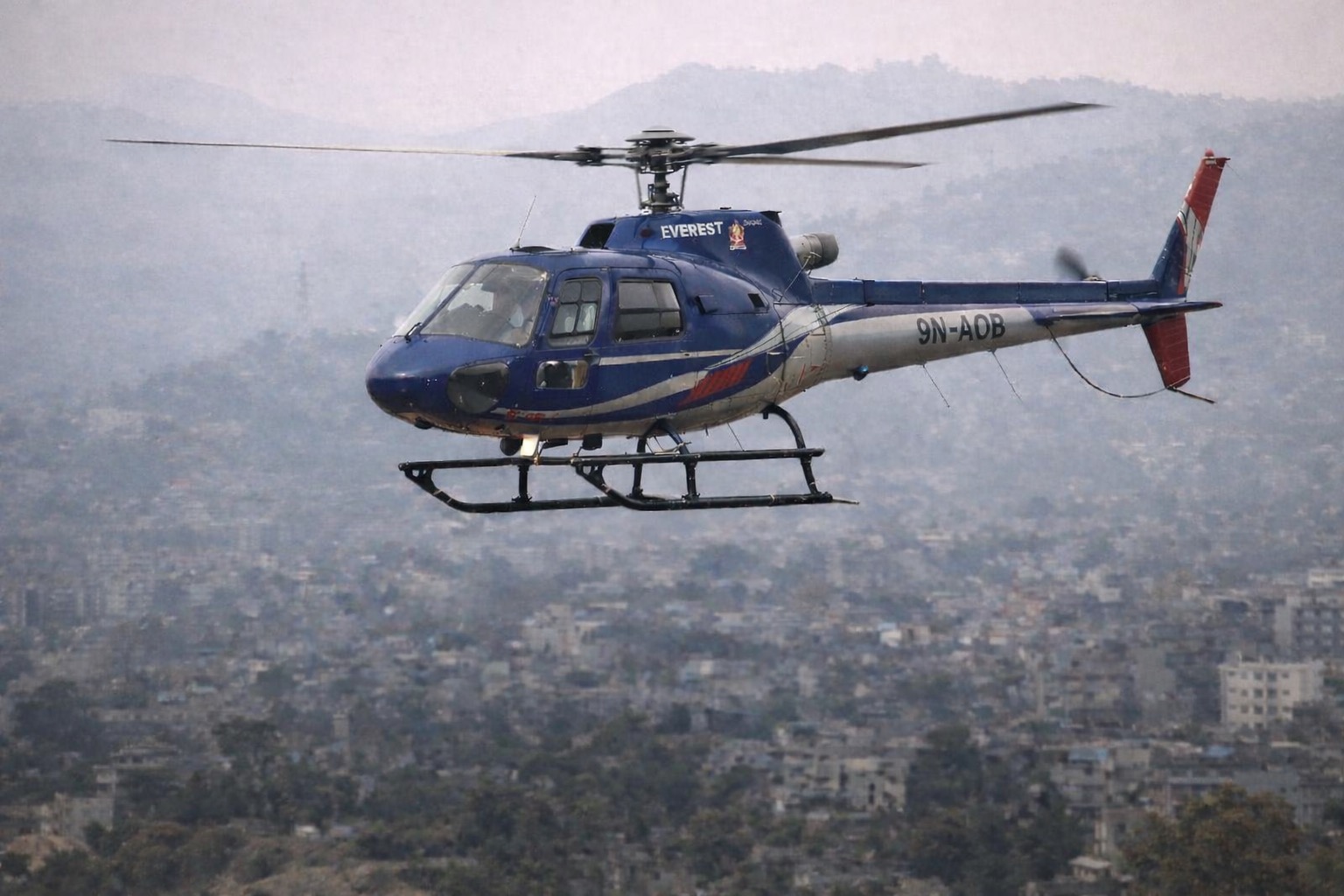 गगन कुमार थापा माउन्टेन एयरको हेलिकोप्टरबाट सर्लाही जाँदै
